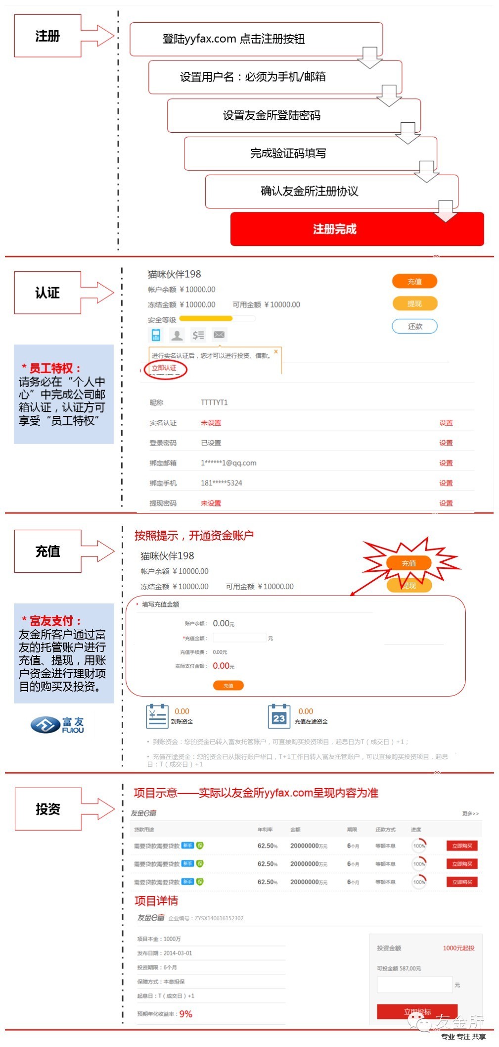 友金所是用友网络(SH600588)成员企业,践行普惠金融,为投资客户提供安全、本息担保、收益稳健的互联网理财服务。【每周一、三、五上午10点整,YY理财上新标,100元起投!年化收益3个月7.5%,6个月9.0%,12个月10.0%】